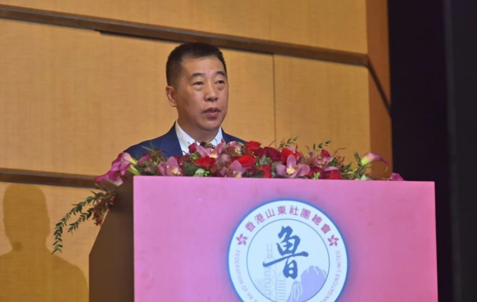 山東省委常委、統戰部部長徐海榮致辭代表中共山東省委統戰部,向香港山東社團總會表示熱烈祝賀。他提到,愛國同鄉社團是團結和培養愛國愛港力量的重要陣地,香港山東社團總會成立以來,秉持「愛國、團結、發展、共贏」宗旨,廣泛團結凝聚在港魯籍鄉親,積極推動魯港交流合作,已成為愛國愛港愛鄉的一支重要力量。未來,他希望香港山東社團總全面準確貫徹「一國兩制」方針,堅定支持行政長官和特區政府依法施政,努力在維護香港繁榮穩定上彰顯新擔當,大力弘揚以愛國愛港為核心、同「一國兩制」相適應的主流價值觀,不斷增強會員鄉親和廣大民眾的國家意識、愛國精神,努力在壯大愛國愛港力量上展現新作為。